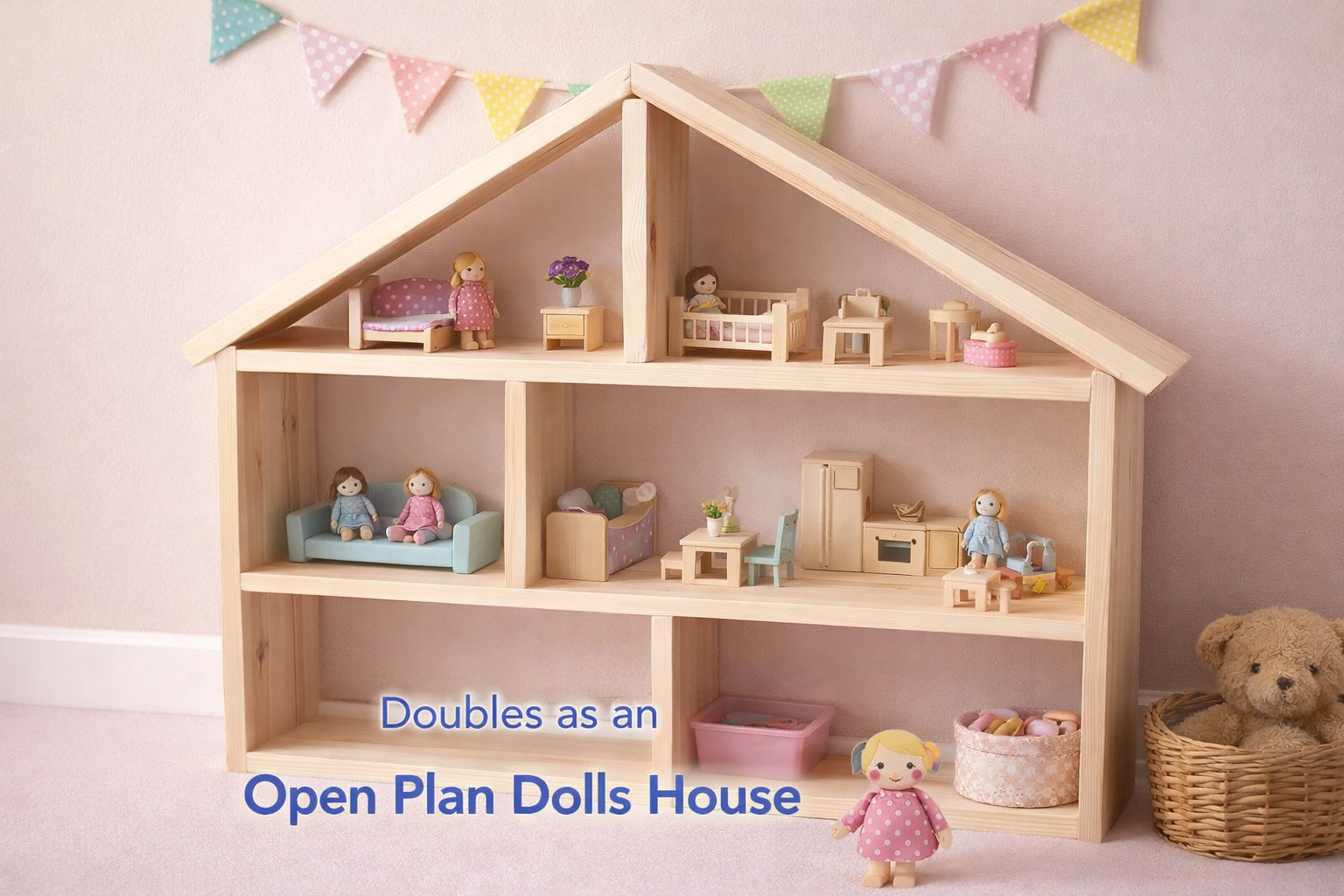 Dolls House Wooden Shelf Unit – Free Standing or Wall Mounted