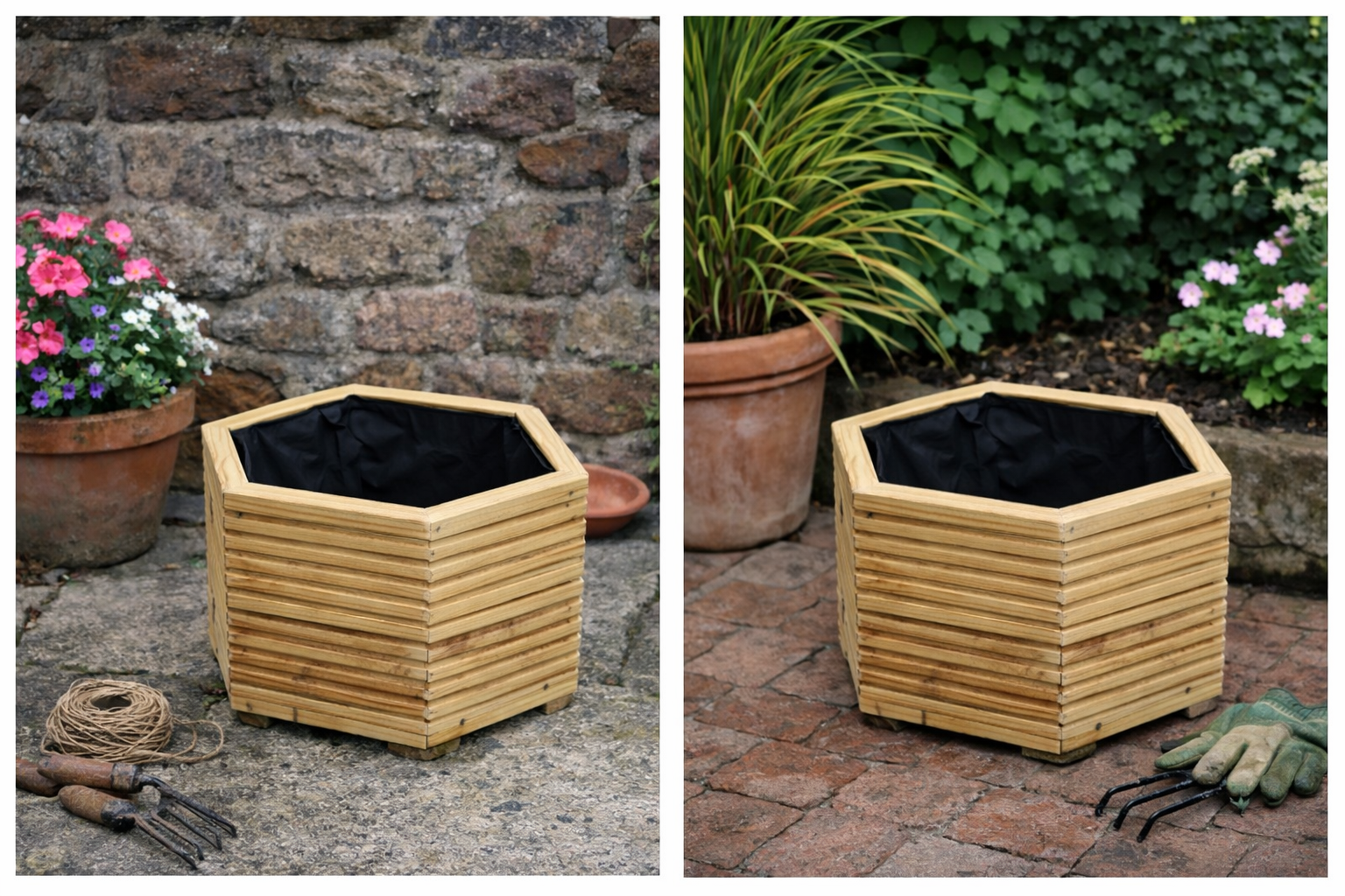 Each planter is fitted with a permeable liner. This allows excess water to drain away while protecting the timber from root damage and prolonged moisture exposure. Pre-drilled drainage holes are included as standard.