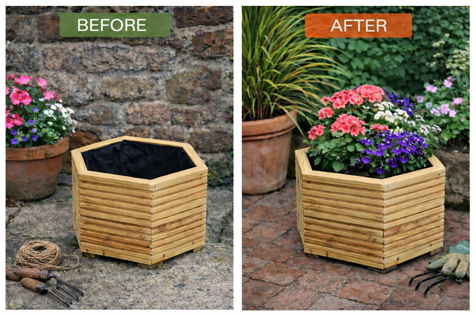 If you’re looking for something more distinctive than a standard square planter, this handcrafted hexagonal decking planter adds character and structure to patios, courtyards and garden corners. Its geometric shape creates visual interest while offering generous planting depth for flowers, herbs or compact shrubs.