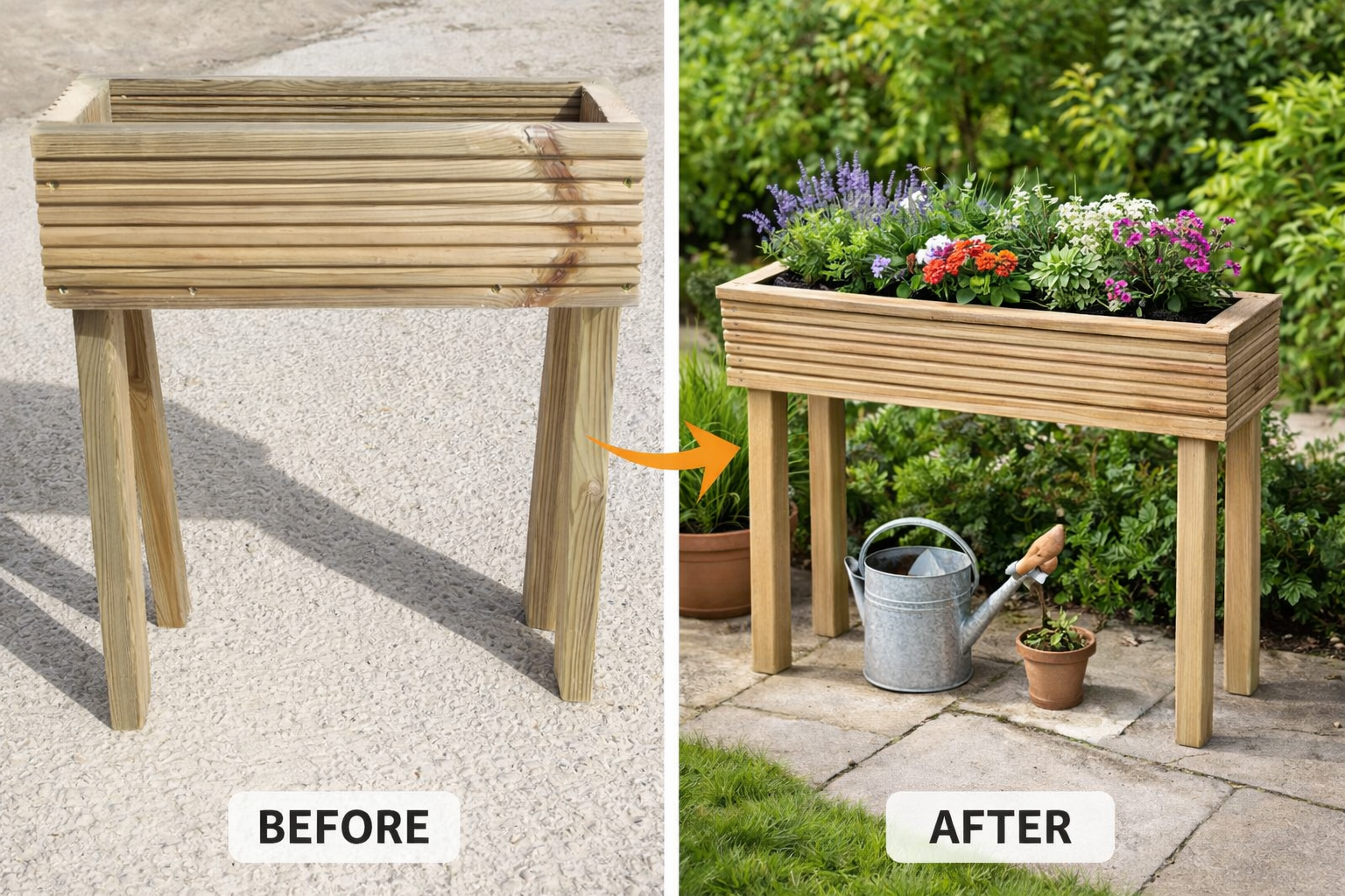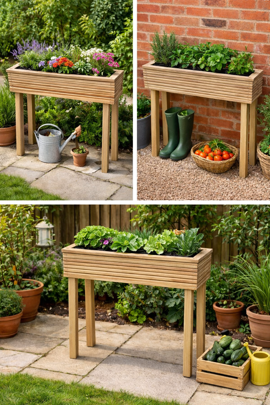 Each planter is handmade using high-quality decking boards sourced locally from sustainable timber suppliers. The horizontal board design gives a clean, structured appearance that suits both modern patios and traditional gardens.