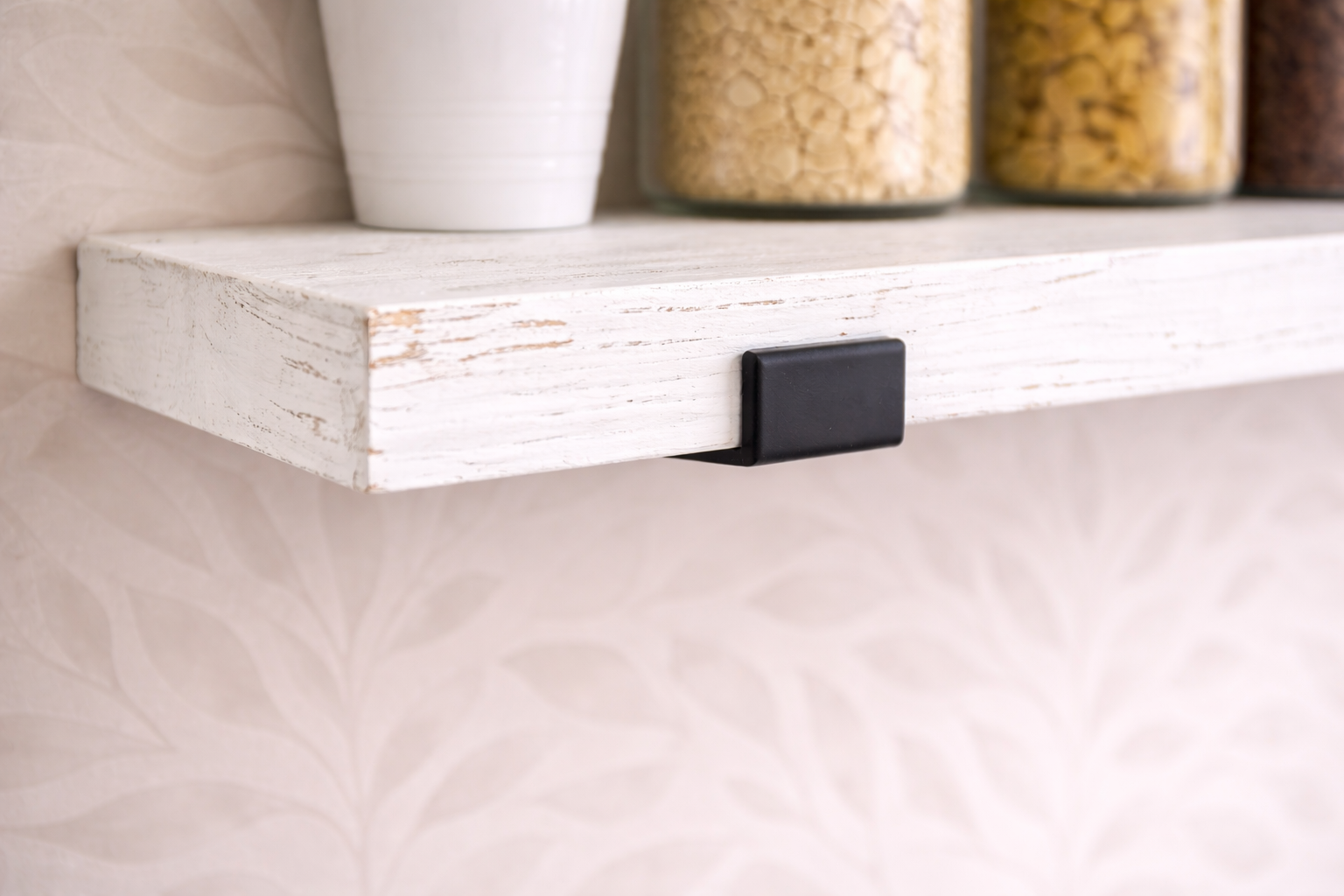 Unlike mass-produced alternatives, each shelf is made from genuine reclaimed scaffold boards — meaning natural grain, subtle imperfections and authentic texture remain visible beneath the white finish.